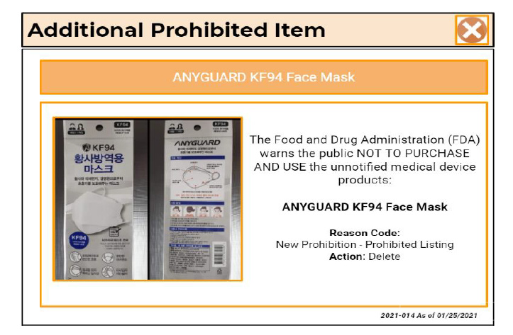 CB 卖家禁止售卖 这款 ANYGUARD KF94 口罩,任何类似的物品将会被 Listing 删除