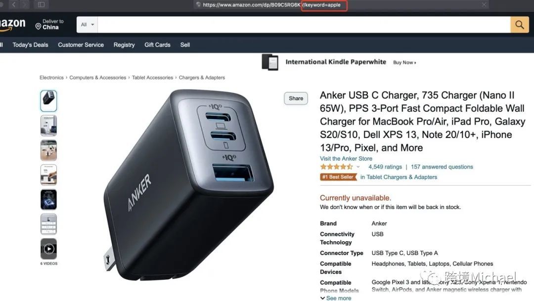 就类似我在下面拿anker的链接举例,我在他们的URL插入了apple的品牌名,然后拿着这个截图说anker用apple的品牌名做seo,侵犯了apple的商标著作权。就是这样的证据冻了我们十几万美金,乃至到最后的大几十万美金。是不是很可笑,但这就是商场,因为对他们来说没什么损失,一旦赢了我们店铺就倒了,或者就赌我们中国卖家只会求和解,舒舒服服收割十几万美金,还可以赚钱。